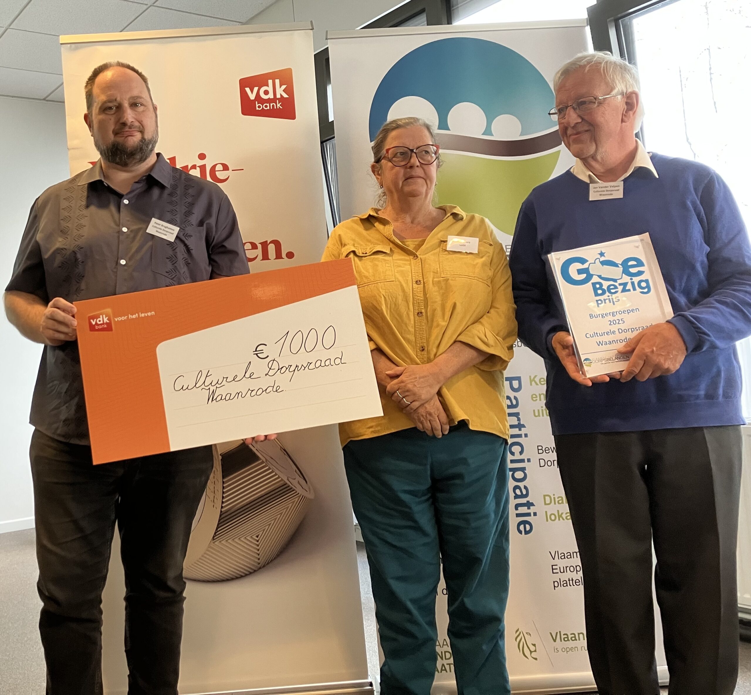 Culturele Dorpsraad Waanrode vzw ontving als winnaar een cheque van € 1000 van vdk bank!